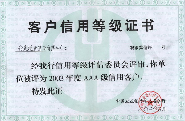 2003年3A信用證書
