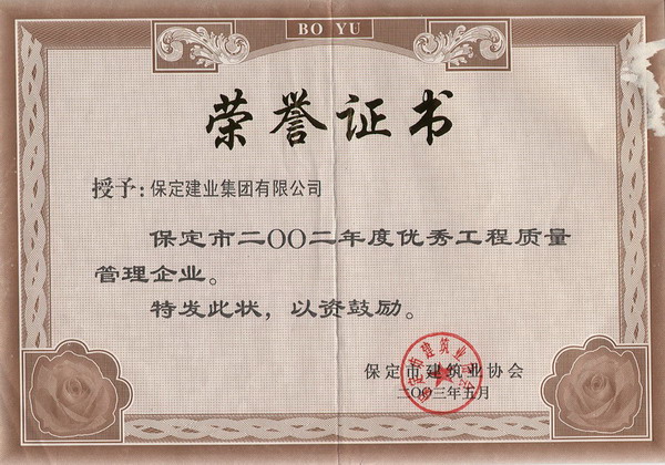02年度市工程質(zhì)量管理優(yōu)秀企業(yè)...