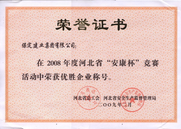 08年度省安康杯優(yōu)勝企業(yè)