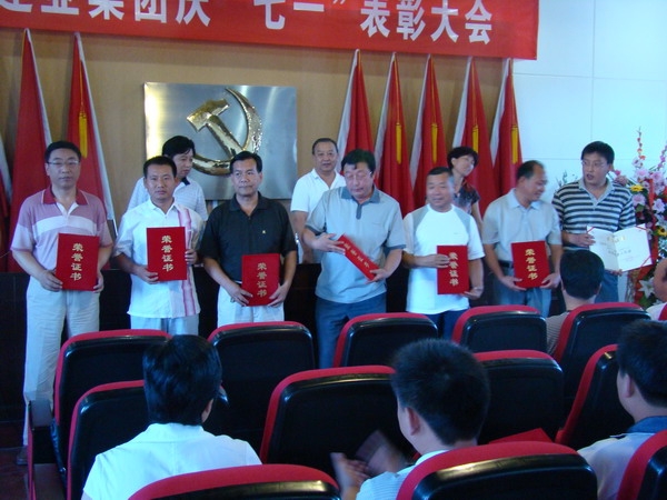 為迎接建黨八十八周年, 2009年6月29日上午,集團(tuán)公司黨委在六樓大會(huì)議室舉行了隆重的慶“七一”表彰大會(huì),對(duì)在過(guò)去的一年中,集團(tuán)公司各方面工作中涌現(xiàn)出來(lái)的先進(jìn)黨支部、優(yōu)秀共產(chǎn)黨員、優(yōu)秀黨務(wù)工作者進(jìn)行了表彰。